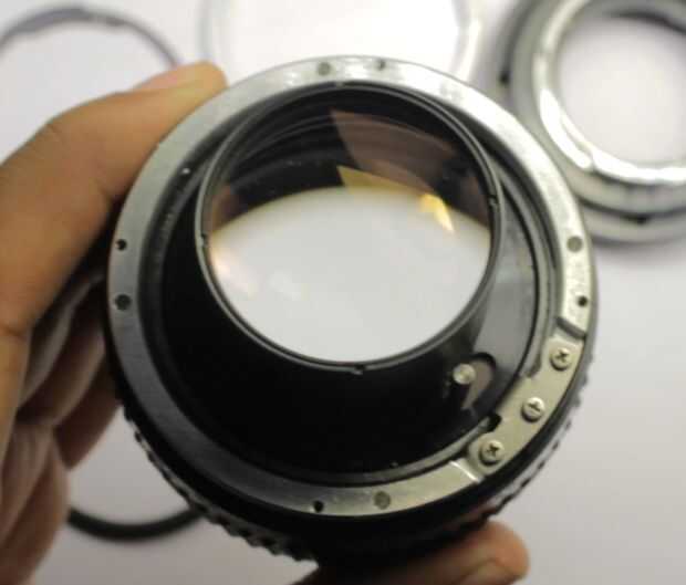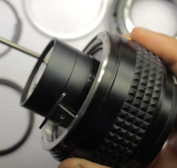 Como quitar el mecanismo de apertura podrás ver el mecanismo de enfoque, con un anillo de plata interno y el anillo externo negro.