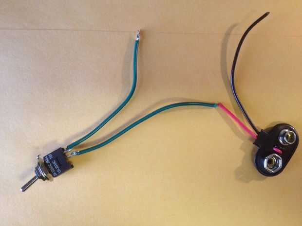 Soldar un interruptor a un clip de batería de 9 voltios para el receptor.