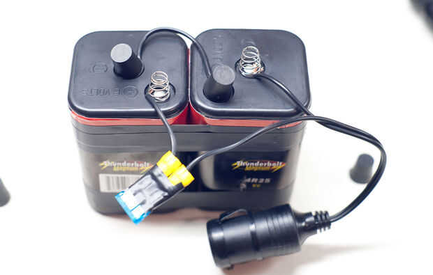 Batería 2 punta de la primavera en el polo positivo hacia un lado y deslice el cable pelado en la primavera. Este será el polo positivo que no se utiliza en el paso anterior.
