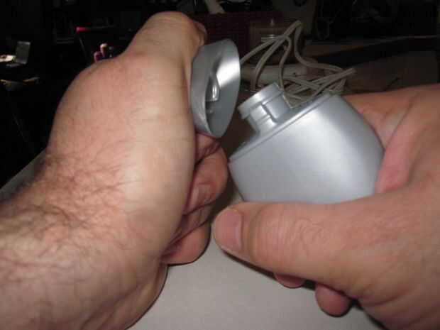 Una vez que la etiqueta es apagado, usted necesitará sacar la tapa del recipiente para lavar hacia fuera. Sostiene el recipiente con ambas manos, gire con cuidado la tapa al lado (como en la imagen) y luego pop la parte superior. Va a ser bastante resistente para salir (naturalmente o fugas en el lugar cuando la tapa), pero podrás bajar sin recurrir a más instrumentos de destrucción o uso extensivo de su vocabulario extraño.