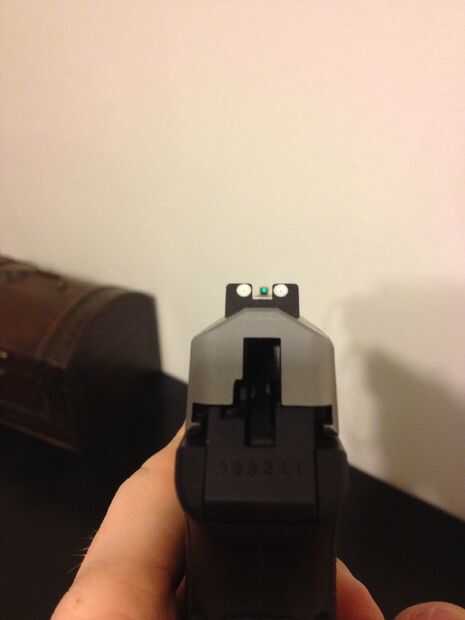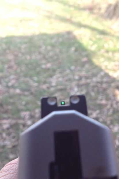 Un par de días más tarde, fui a la gama y se sorprenderá de lo bien trabajado la vista. La luz del sol natural (siendo incluso en la sombra) iluminó la vista mucho mejor que la iluminación de CFL en mi casa. Esto es todavía ni en los reinos de monumentos de noche, pero definitivamente ayuda. Encontré un sitio que vende frascos individuales de tritio para ~ $8 cada uno. Vienen en 1,5 mm de diámetro x 6 mm de largo. Creo que queda bastante material en esta vista para perforar el agujero 5 mm más grande, pero por ahora voy a usar esto por un tiempo.