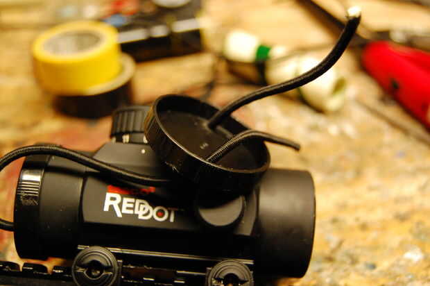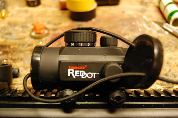 en esto instructible le mostraré cómo usar correctamente el alcance de un punto rojo. Mi de mi rifle de resorte famas assult.Paso 1: ajustar a las necesidades de la pistola No magnifica mi alcance punto rojo porque un assult rifle no es un francotira