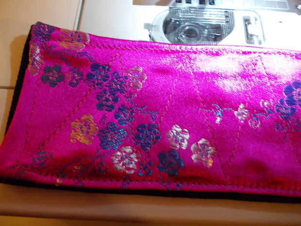 Costura siempre ayuda a estabilizar a un tejido y como no tengo ninguna entretela en mano fue mi opción preferida para la fabricación de la correa un poco más robusto. Yo simplemente cosida diagonalmente a lo largo de la longitud de la correa hasta que llegué a la parte inferior. Luego hice lo mismo va la otra manera que crea un patrón del diamante.