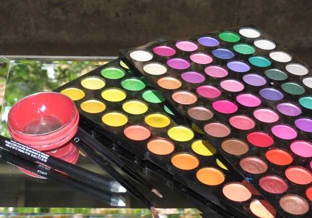 este es un look muy fácil y divertido para todo lo que usted está dispuesto a asistir con arco iris en su cara.Para hacer este look, es necesario:-Cartilla párpados-Sombra de ojos en violeta, azul, verde, amarillo, naranja y rojo-Brillo o delineador
