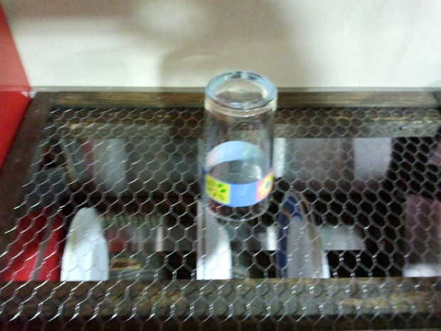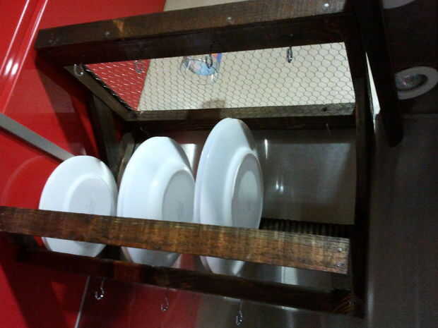 Puse una bandeja de acero inoxidable bajo las gafas, no para mojar platos secos.