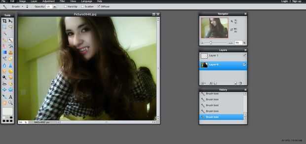 usar la herramienta dedo con un tamaño pequeño y manchar un diente para que el diente parezca más