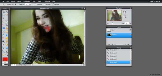 usar tamaño de pincel de pintura 15 hacer ojos rojos y con sangre un poco
