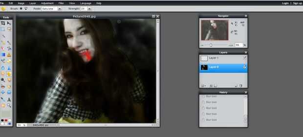 utilizar el modo de cepillo 25 esponja sature e ir sobre la parte de la sangre para que se vea más brillante