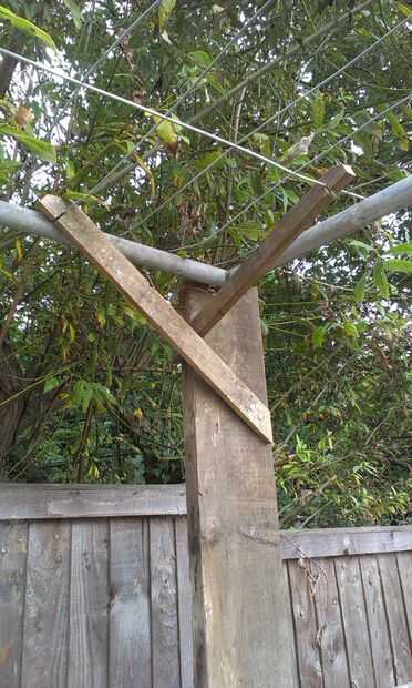 Cada poste debe tener dos como se muestra para que contrarrestar mutuamente y detener cualquier vaivén. Podría hacer pedazos más grandes pero no debería ser todo más cortos que estos como no tienen mucho efecto en esos puestos largo.