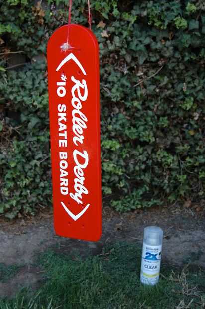Después de que su plantilla está apagado, no dude en volver y hacer cualquier rápido realizar retoques a la pintura roja o blanca en su tabla. A continuación, usted querrá aplicar unas capas delgadas de capa clara. Esto protege la pintura un poco más y añade un acabado agradable. No quiero poner cinta del apretón en la mía, porque las tablas originales no había cinta del apretón.