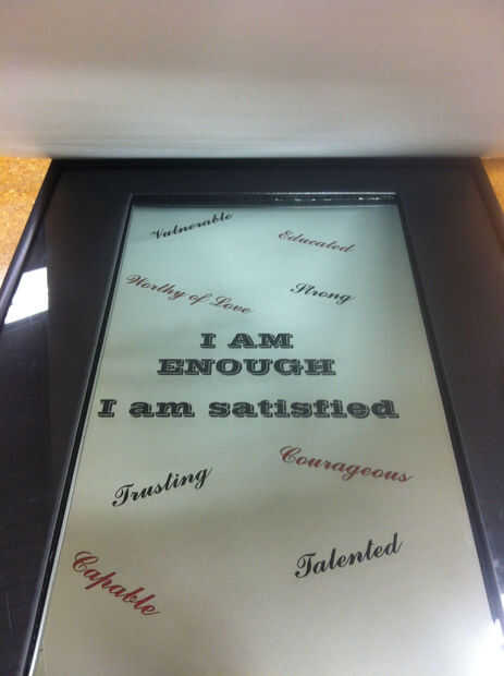 La idea aquí es que cuando te ves en el espejo, proyecta volver a usted todas las cosas que le recuerdan a su valor intrínseco. Esta persona es la que más importa en tu vida y que no se celebrara a la luz por nadie. Si eres ciego que alguien grabe para usted en la parte frontal para que pueda leer.