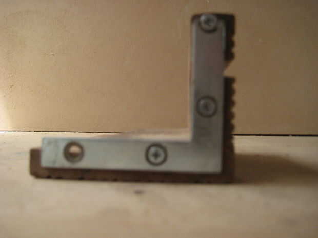 Sujete el soporte de L a mano derecha y asegúrese de que alinea en la parte superior del resto de material móvil. Si su pieza de ajuste trasero está fuera de escuadra como la mía es de 1 mm que necesita para asegurar el soporte es cuadrado con el resto de material móvil y no el frente de la up adecuado. Compruebe su squarness de su trabajo en todo momento.