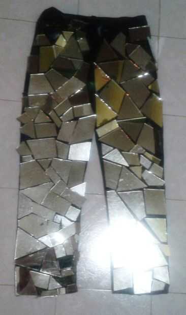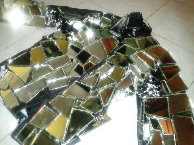 Quitar los bordes todo feos y cortar el espejo en piezas geométricas, todas las formas, todos los tamaños.