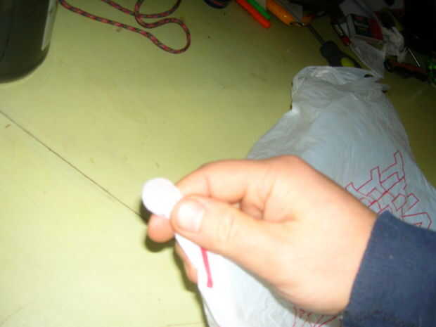 Mis 2 centavos: una mochila improvisada de una bolsa de comestibles y de paracord (2 / 5 paso)