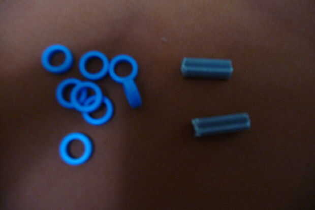 3. Haz estas (8 espaciadores azul y gris de corte 2 varillas (si no quieres cortar sus cañas, obtener a sólo 4 discos azules y las barras grises de la gota))