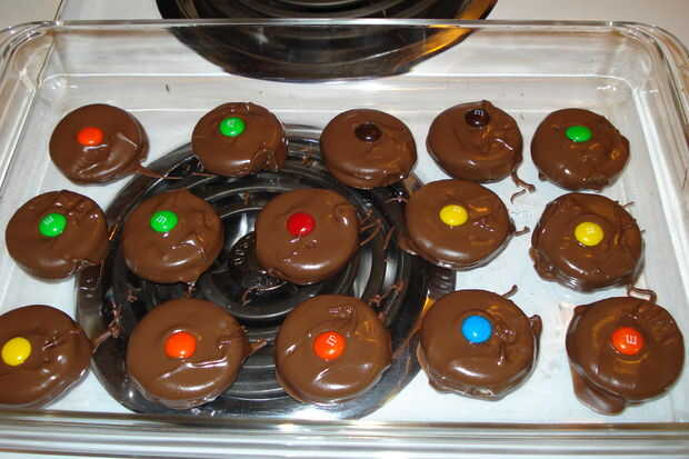 Antes de que el chocolate se enfríe agregar el M & M en la parte superior de la galleta. Esto es genial hacer con niños, porque la diversión poco puestos de trabajo en cada etapa de este proyecto y lo mejor es que no se utiliza horno! ¡ Es una galleta super segura para hacer con tus hijos! También muy bien que no está calentando la casa o aumentar su factura de energía o gas. Así que que esperas para conseguir fundir! ¡ y disfrutar! Im comer uno ahora mismo! Mmmmmmmm!