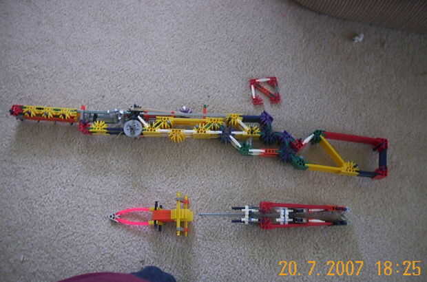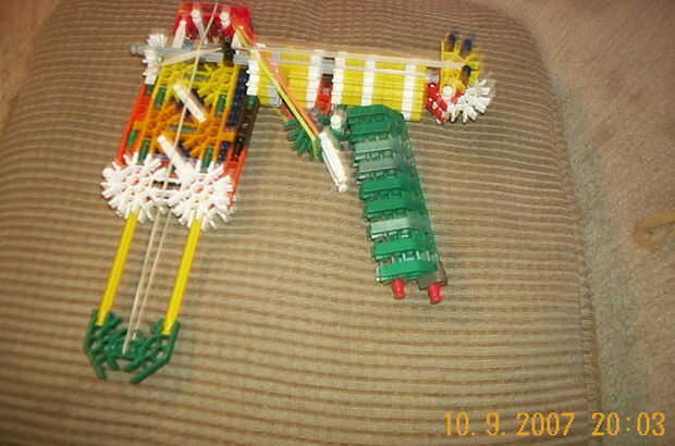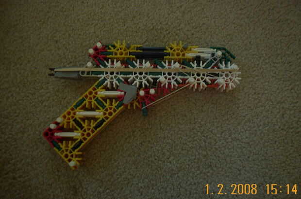 casi todas las armas de K'nex he hecho y aún no se ha destruido. Hay de todo de fusiles a pistolas, RBGs a armas de cañón intercambiable.Dime si quieres un instructable para cualquiera de estos...