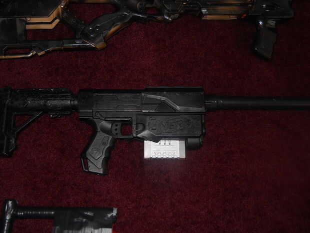 esto es rifle nerf principal uso en combate. Nuestras guerras de nerf siempre son en interiores por lo que no se necesitan armas modificadas. Esta pistola nerf tiene un alcance de acog (binocular), una linterna, un lanzador de granadas (de trabajo) y