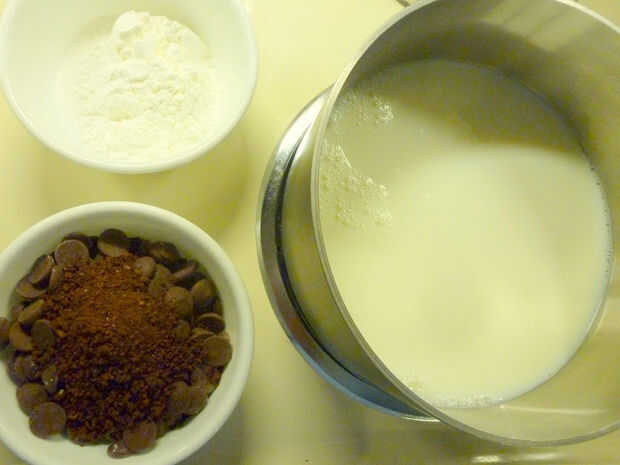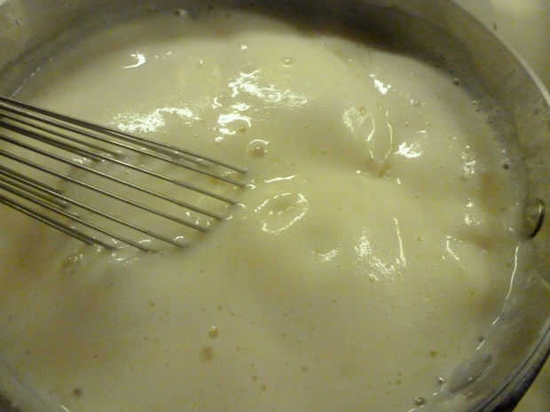 Tienen los ingredientes medidos y listos para ir. Empiezo a fuego alto hasta que la olla se caliente al tacto. Batiendo constantemente. Entonces mariposa a medio. Batiendo constantemente. Luego en la 1 º muestra de una burbuja, a media baja. Batiendo constantemente. Luego continuar calefacción durante 5 minutos en un hervor muy bajo. Batiendo constantemente.