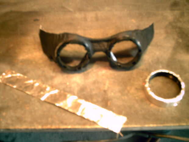 decidí usar pegamento caliente porque establece rápidamente, sigue siendo algo flexible y es semipermanente. Eso es si usted comete un error, puede tirar aparte y raspar fuera a empezar de nuevo. Comencé por alinear la cubierta con un lado de mis gafas y pegar alrededor del orificio de la lente un poco a la vez, presionando ligeramente el cuero en el pegamento. (Tenga cuidado de no quemarse los dedos como el pegamento puede ser muy caliente!) Ahora sólo su forma de trabajo hacia afuera hasta el borde, finalmente envuelve la piel sobrante alrededor de la parte posterior, excepto la parte que se fije la banda de cabeza a.