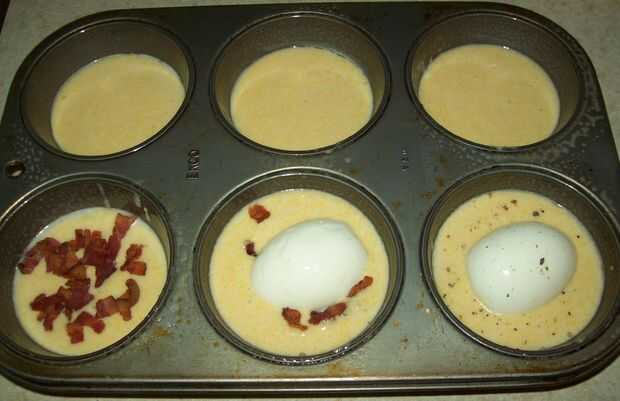 Llenar cada taza muffin aproximadamente la mitad con la masa del muffin de maíz.