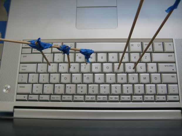 Con varios puntos de registro en su lugar, después empujar mi portátil por debajo de los pinchos y alineado con la casa fila de teclas donde quería que mis dedos a la tierra.