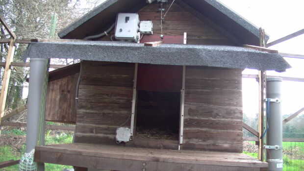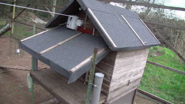 Quería una pequeña puerta se abra automáticamente (a través de Arduino - mañana/noche) con el mundo exterior. Haciendo esto nos liberaría de preocuparnos si los pollos estaban a salvo en la noche y para poder salir de la casa cuando queríamos) esta p