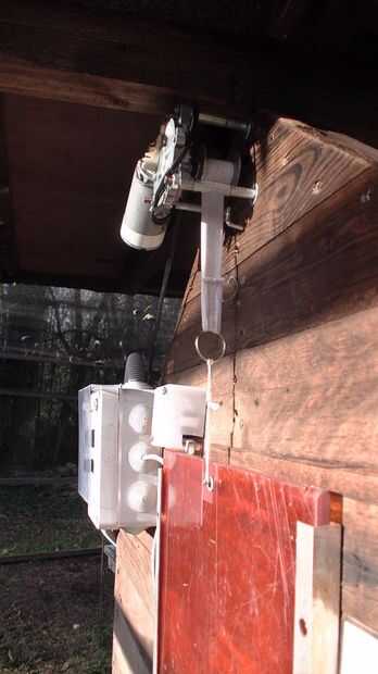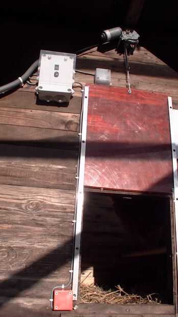 Quería una pequeña puerta se abra automáticamente (a través de Arduino - mañana/noche) con el mundo exterior. Haciendo esto nos liberaría de preocuparnos si los pollos estaban a salvo en la noche y para poder salir de la casa cuando queríamos) esta p