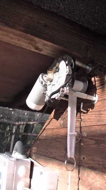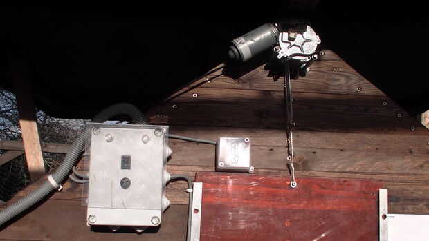 7. el frente incluye una puerta automática que se abre con un motor de limpiaparabrisas trasero rescatado de un Renault Megane y controlado por un interruptor de la luz. Cuando llega el atardecer la puerta viene hacia abajo y hacia atrás a lo largo de la tapa del depósito de grano