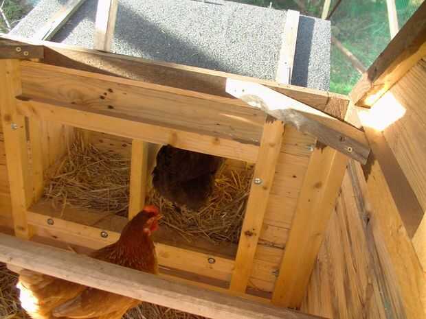 Hice este coop para los seis pollos. Cuenta con dos refugios dentro y cinco cajas de anidación. (Uno de mis pollos es un gallo). Hice una agua protector para la tapa de la caja de nidificación mediante el uso de alguna barrera de vapor y para calafat