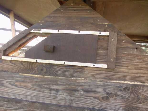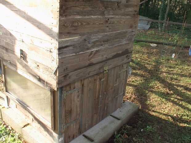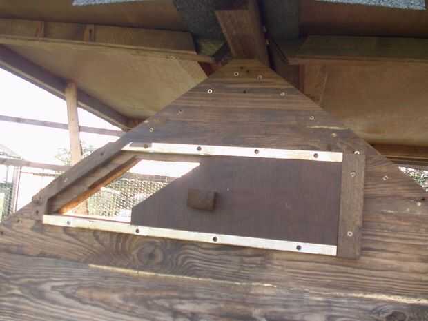 En la parte posterior del gallinero, hice una pequeña ventana con una cubierta deslizante para la ventilación de la "habitación" de las "chicas".
