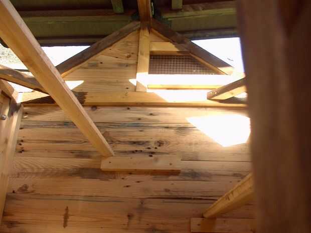 hacer un gallinero con restos encontrados fácilmente alrededor de la granja o en la punta. Cercado de malla, ramas de árbol flexible, barro, paja y lata. Este gallinero utiliza habilidades de tejer muy básicas y técnicas de construcción de la tierra.