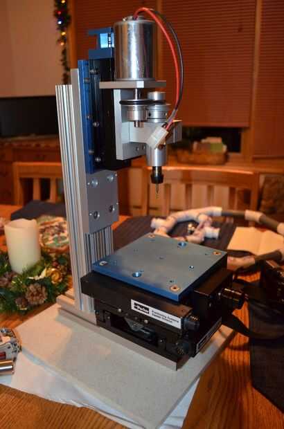 Este fue el resultado, tabla XY de Dedal de Parker y una alta precisión cruz eje rodamiento Z con un husillo RPM 10,00. El marco para la máquina es de aluminio extrusionado 8020. Para lograr una máquina capaz de "sala limpia", todas las piezas de aluminio se anodizan y la base de la máquina es un material superior del mostrador compuesto.