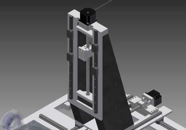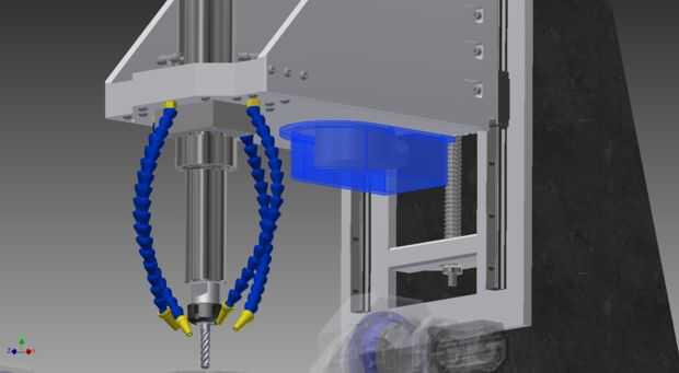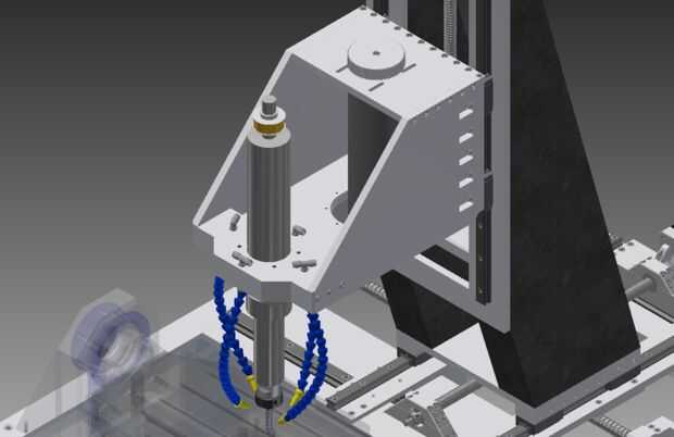 Un único problema surgió, cómo construir una máquina exacta, rígida, bajo costo, sin necesidad de utilizar el hierro fundido como fábricas de la mayoría. Después de llenar cajas de aluminio con hormigón, arena, litro de gato, etc.; o con tubos de acero rellenos similares, decidí salir de la caja. Las 3 partes más grandes de la máquina será granito, una mesa y los soportes verticales en el eje Z, respectivamente 3 y 4 pulgadas de espesor. Estos serán por chorro de agua CNC corte por una tienda local de granito en sus 5 ejes CNC, generalmente se utilizan para encimeras. Arriba son fotos de los modelos de CAD y muchos de sus principales atributos mecánicos con leyendas de texto.