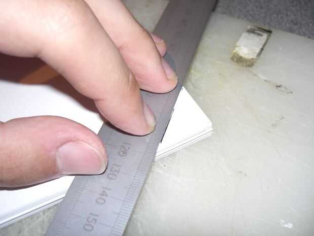 Por último, volver a usar la tapa como guía, marcar y quitar las esquinas de las hojas.