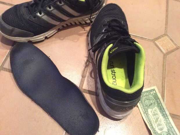 Si usted está teniendo un momento difícil sacar su único, trate de desatar los cordones. Asegúrese de que hay ningunos agujeros en la parte inferior de los zapatos. Usted no quiere su dinero o llaves cayendo! : 0