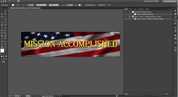 Encontré algunas imágenes comunes de una bandera y luego lo arrastró en Adobe Illustrator. Usé la fuente más americana que tenía en mi fontbook y dado vuelta le relieve de amarillo con un muy fuerte efecto. Nada dice ' merica más que texto realzado.