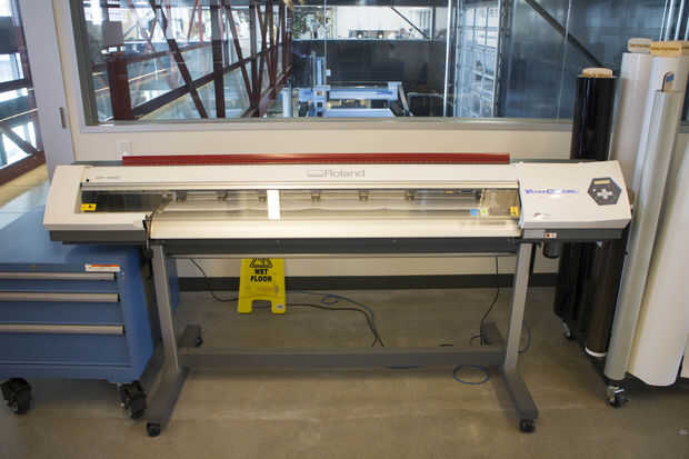 Utilicé el VersaCamm Software para alimentar a la impresora el archivo desde nuestro laboratorio aquí en el muelle 9. Cuando salió de la impresora, corte el vinilo extra y echar en un cubo de chatarra para que otros puedan usar en el futuro.
