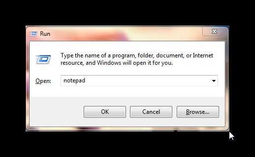 Abrir Bloc de notas presionando la tecla de Windows + R y escribiendo notepad o haga clic en Inicio y Bloc de notas tipo.