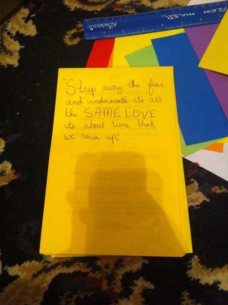 Escuchar la canción y encuentra tus frases favoritas, anotarlas en un guión de lujo (también puede escribirles) aconseja el uso de im libro blanco sólo va a dar un ejemplo sobre un papel amarillo.