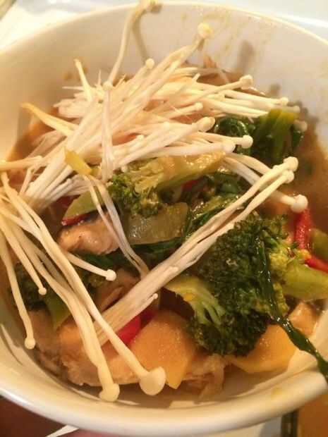 Decorar la parte superior de cada plato con las setas de enoki. No sólo son estos deliciosos, pero se ven muy buenas como guarnición y añadir mucho a la estética de su plato.