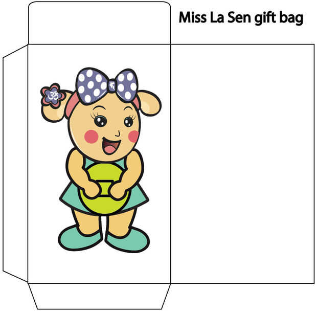 Miss La Sen es bonito icono. Ella aparece en el juego de mesa de historia aquí, juego para móviles y algunos dibujos animados clips, Hola la canción La Sen - Hi Nice Life. Se puede hacer bolsa de papel de Miss La Sen.Paso 1: Descargar este patrón.Pas