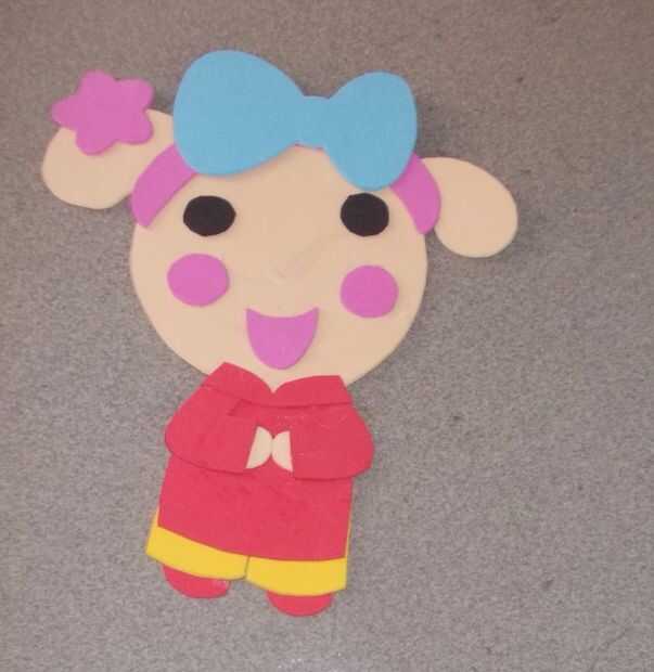 Algunas decoraciones de cadena para la puerta, pared hará más divertido.Paso 1: Descargar este patrón e imprimirlo en papel de tamaño A4.Paso 2: Cortar la cabeza de la espuma.Paso 3: Cortar la diadema rosa y pegar en la cabeza.Paso 4: Cortar la flor