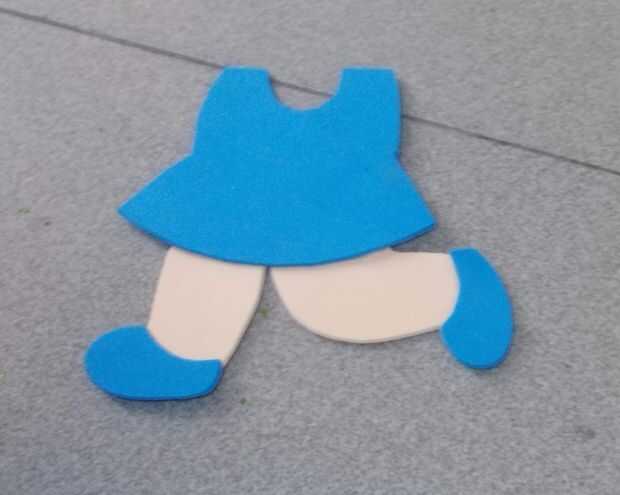 Paso 8: Pega los zapatos en las patas. Pegar las piernas en el vestido.