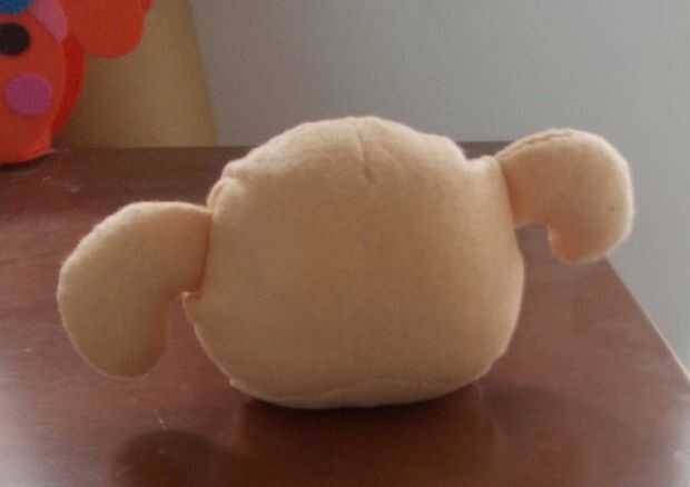 Paso 23: Material relleno de polietileno. Poner el relleno más hacia la cabeza. Coser las aberturas de la cabeza con hilo blanco con una puntada escondida.
