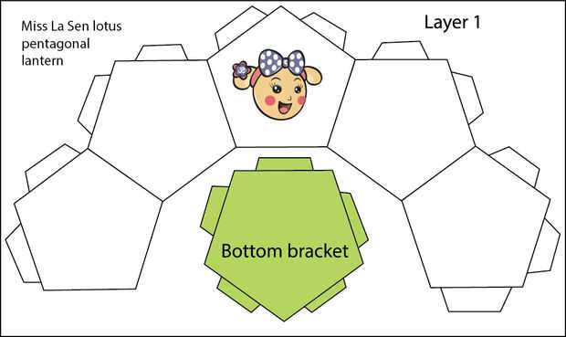 Hacer una linterna de loto de hexágono para celebrar el importanteeventos.Paso 1: Descargar el modelo para la forma de linterna. Imprima en papel de tamaño A3.Paso 2: Descargar el patrón de la forma Sen de La Miss. Imprima en papel de tamaño A4.Paso