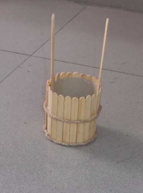 Paso 9: Pegar 2 palillos de madera en los 2 lados del pozo.