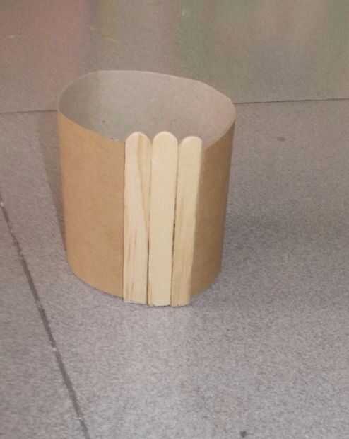 Paso 5: Usar la pistola de pegamento para pegar los palillos de madera en el tubo de papel.