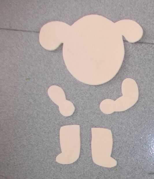 Paso 2: Trazar cabeza de la señorita La Sen, brazos, piernas... en fieltro o espuma. Recorto.