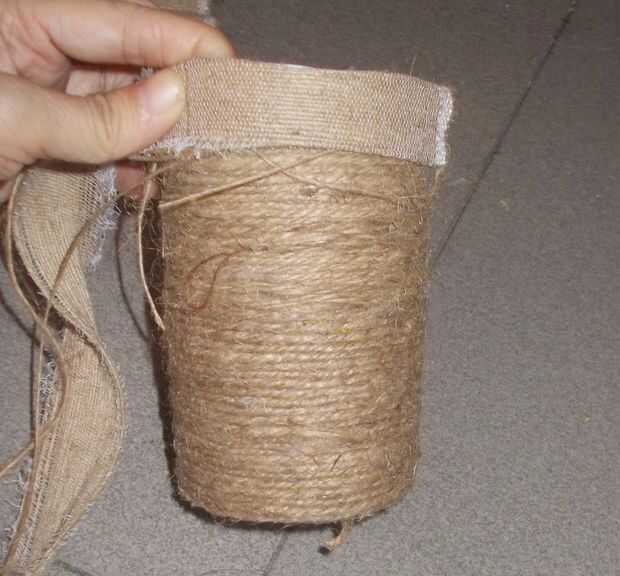 Paso 8: Pega este rectángulo de arpillera en la parte superior de la vasija.